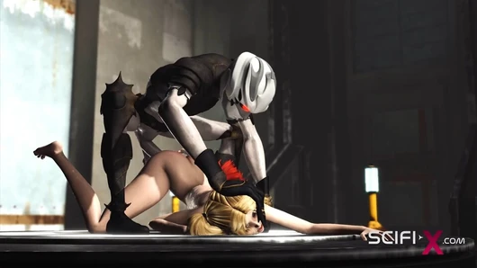 Горячий секс в научно-фантастической лаборатории. сексуальную девушку трахает монстр-андроид